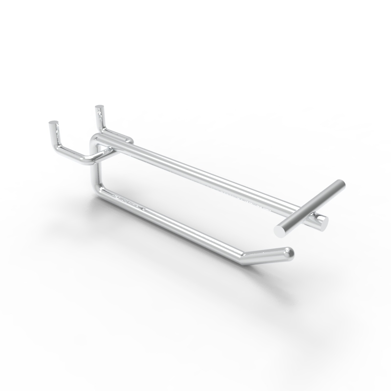 Hook - Double Prong - 100 MM - for Perforated Panel - w/. Flip Scan - KIT - Chrome
